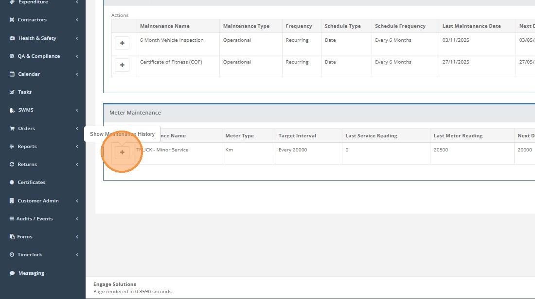 To view all maintenance history for a specific schedule for your asset. Expand the maintenance history.