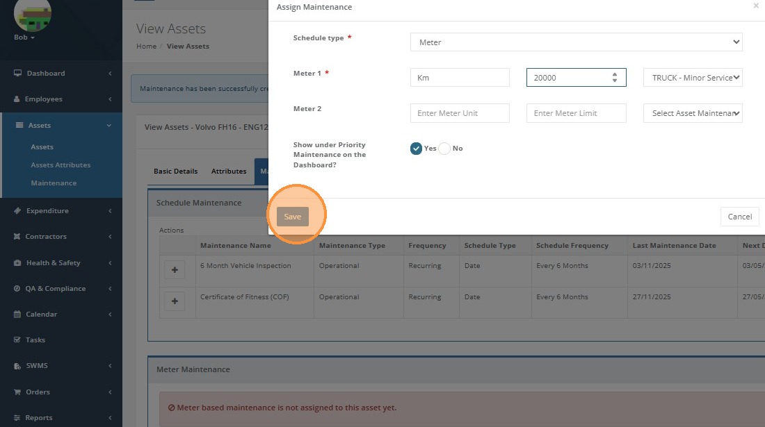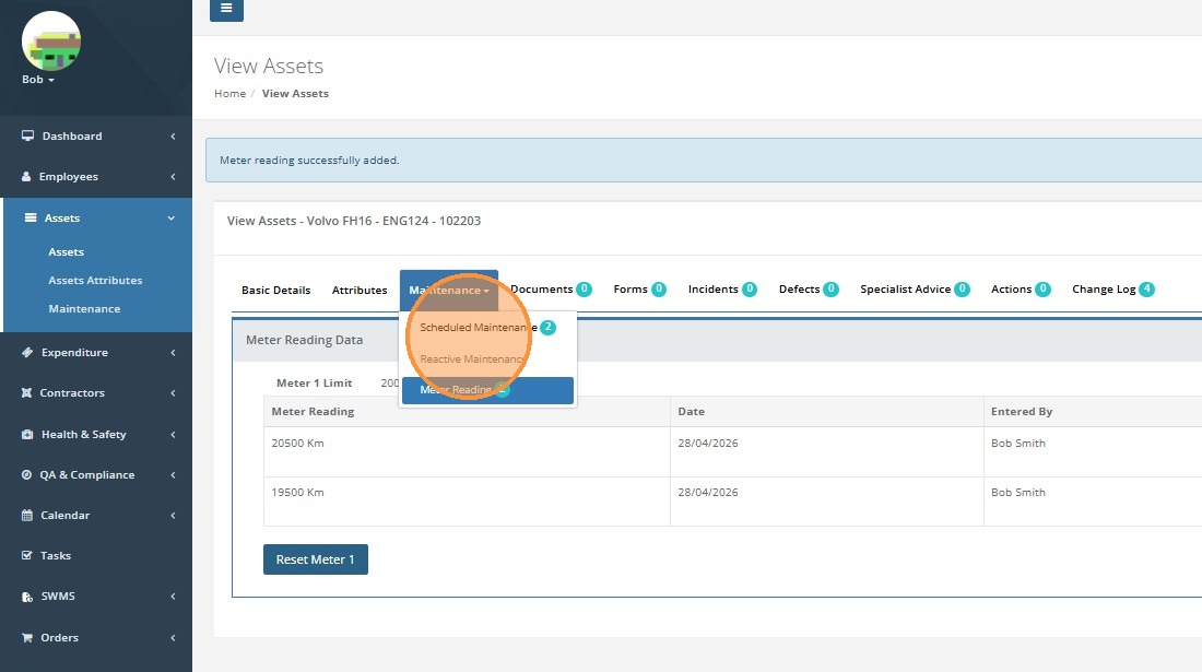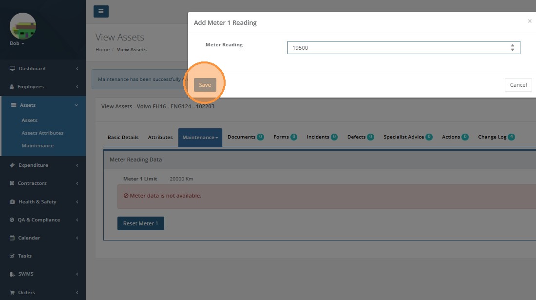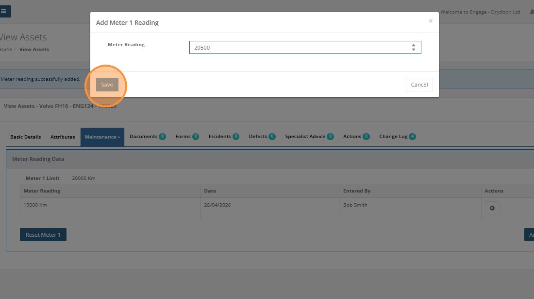 Enter the meter reading for the asset and click 'Save'