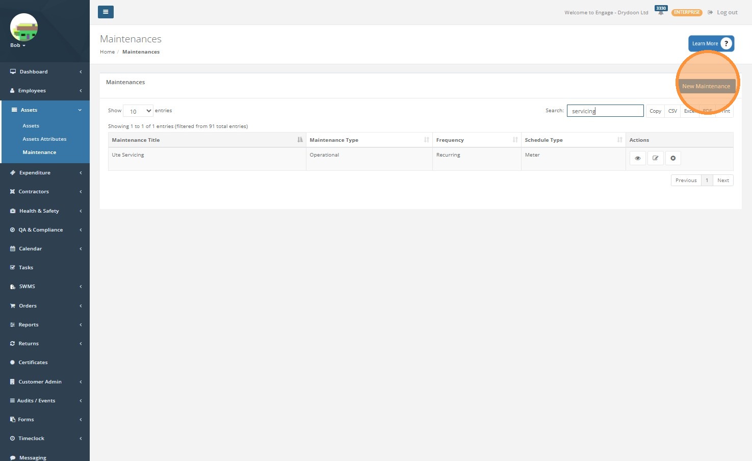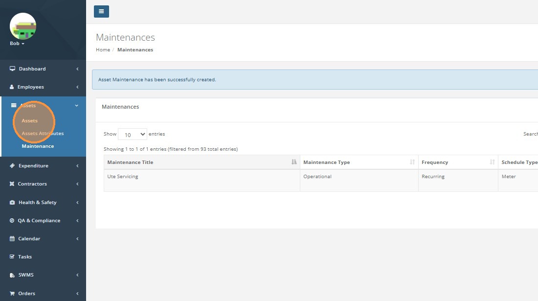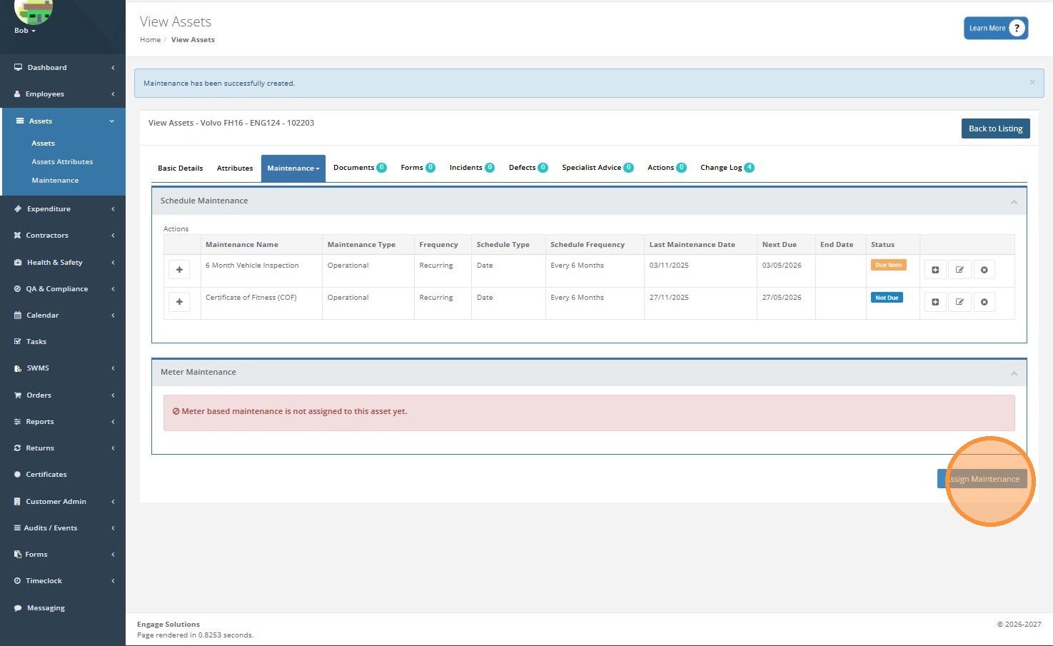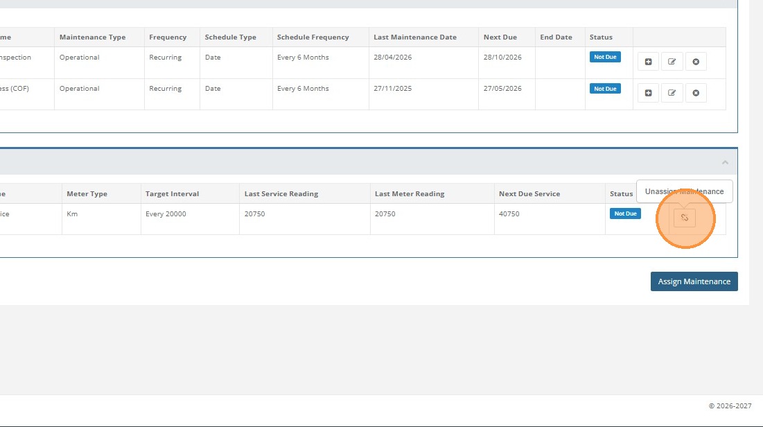 Click "Assign Maintenance"
