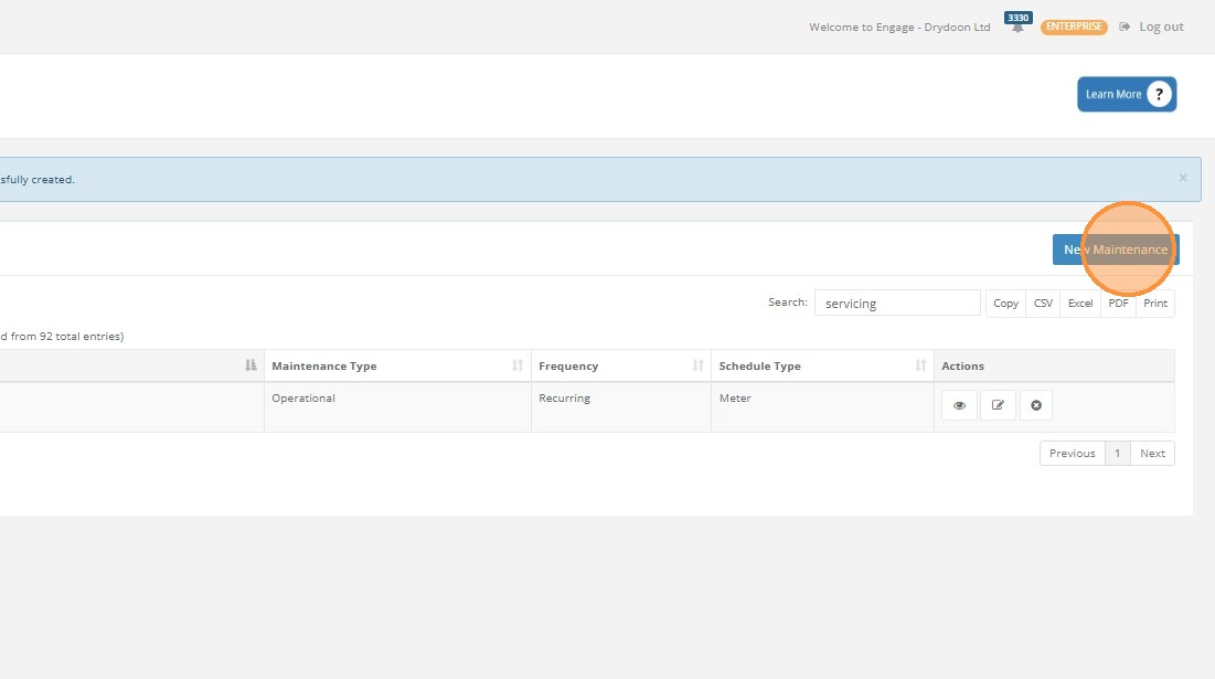 Click "New Maintenance"