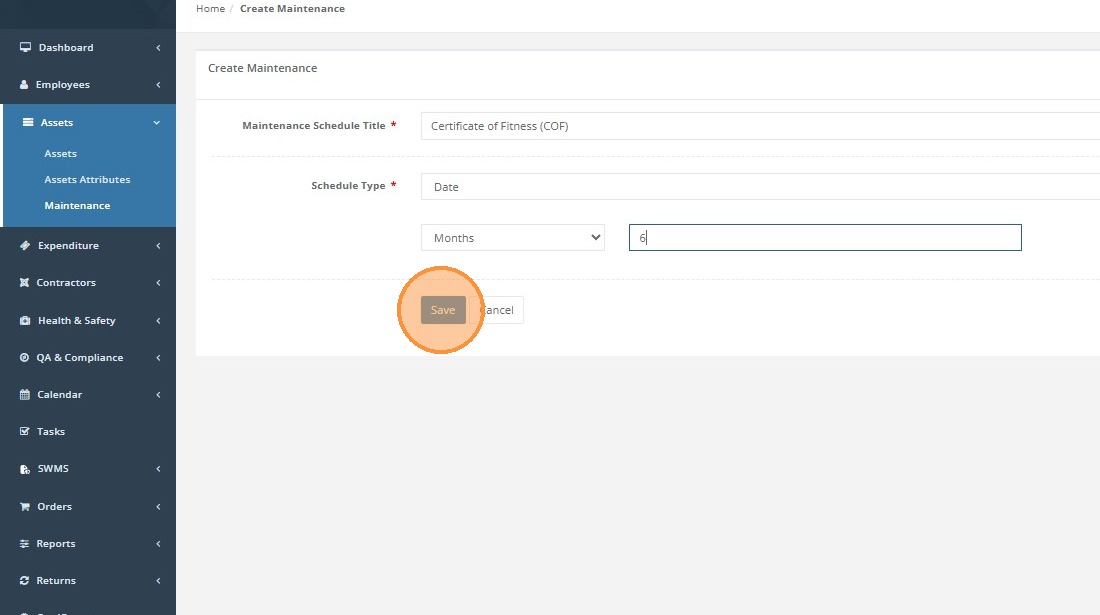 Give your 'Maintenance Schedule Title' a meaningful name to help you select it when assigning it to the asset.