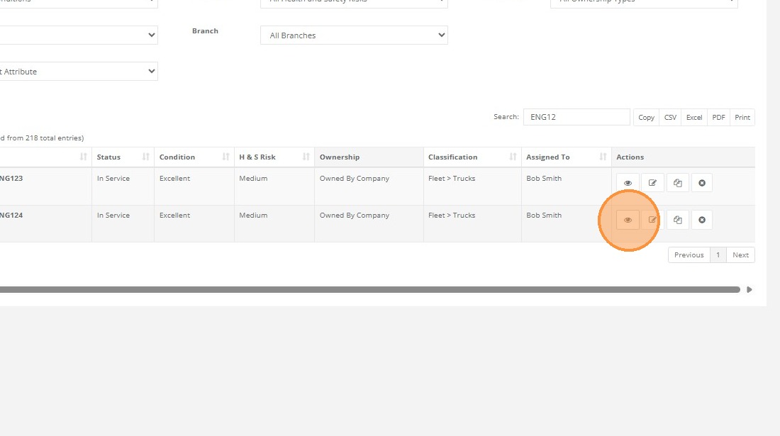 Find your asset then select asset view from the actions list.